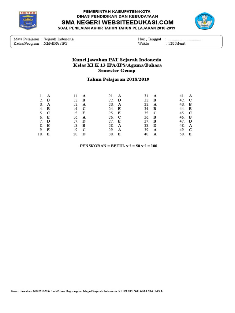 Lengkap 65 contoh soal pg sejarah kelas 11 sma ma semester.