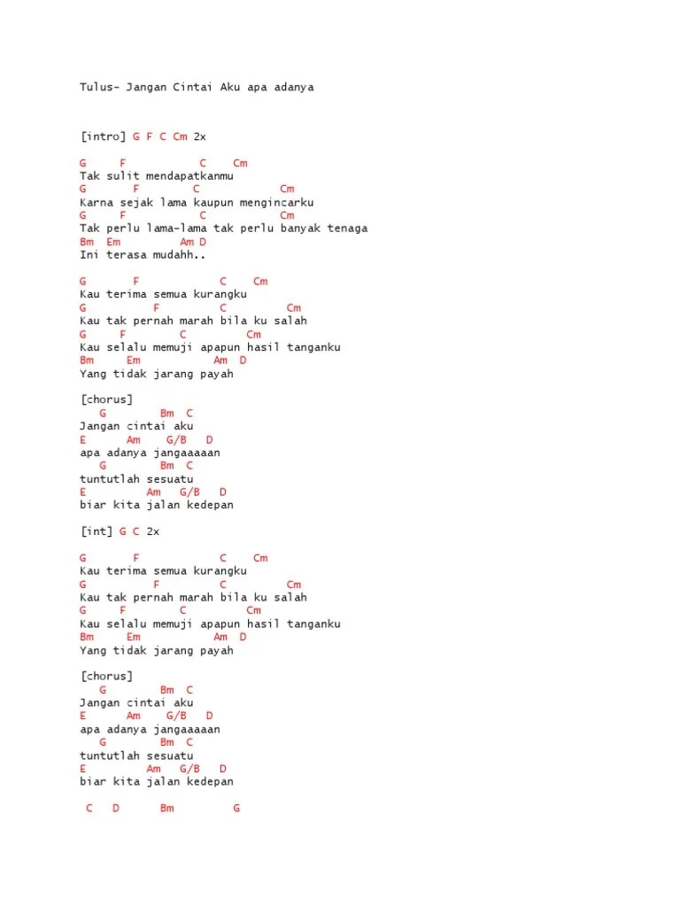 Jangan cintai aku apa adanya if you know the lyrics you can send us . intro g f c cm 2x. Explain your version of song meaning, find more of tulus lyrics. Layanan mobile dari situs entertainment terbesar indonesia, kapanlagi.com. G f c cm tak sulit mendapatkanmu.