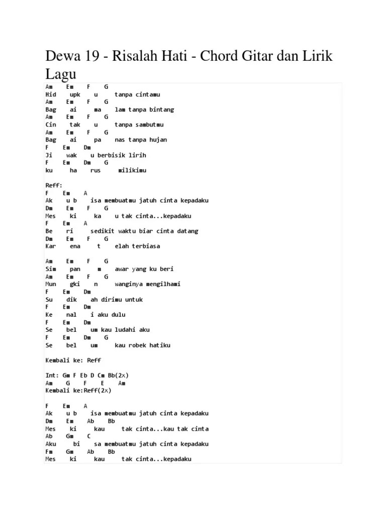 Download lagu gratis, gudang lagu mp3 indonesia, lagu barat terbaik. Il y a 8 jours. Aku bisa membuatmu jatuh cinta kepadaku. Biar cinta datang karena telah terbiasa. Meski kau tak cinta kepadaku. Bagai panas tanpa hujan · reff: Chord kunci gitar asbak band membuatmu cinta padaku lirik lagu. Aku bisa membuatmu jatuh cinta kepadaku. I can make you fall in love with me even if you do not love me. Berikut chord gitar dan lirik lagu risalah hati dari dewa 19, serta video klipnya. Aku bisa membuatmu jatuh cinta kepadaku meski kau tak cinta kepadaku beri sedikit waktu biar cinta datang karena telah terbiasa. Aku bisa membuatmu cinta kepadaku. C g aku bisa membuatmu cinta kepadaku.